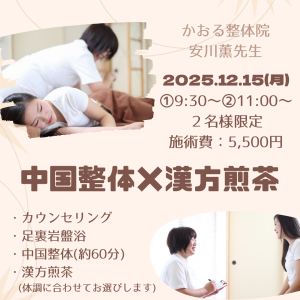 #整体 #中国整体 #コリ #肩こり #首コリ #腰痛 #むくみ #片頭痛 #眼精疲労 #疲れ #倦怠感 #足裏岩盤浴 #漢方煎茶 #薬膳茶 #滋養強壮 #女性の悩み #産後 #妊活 #生理痛 #個室整体 #白山市 #石川県 #かおる整体院